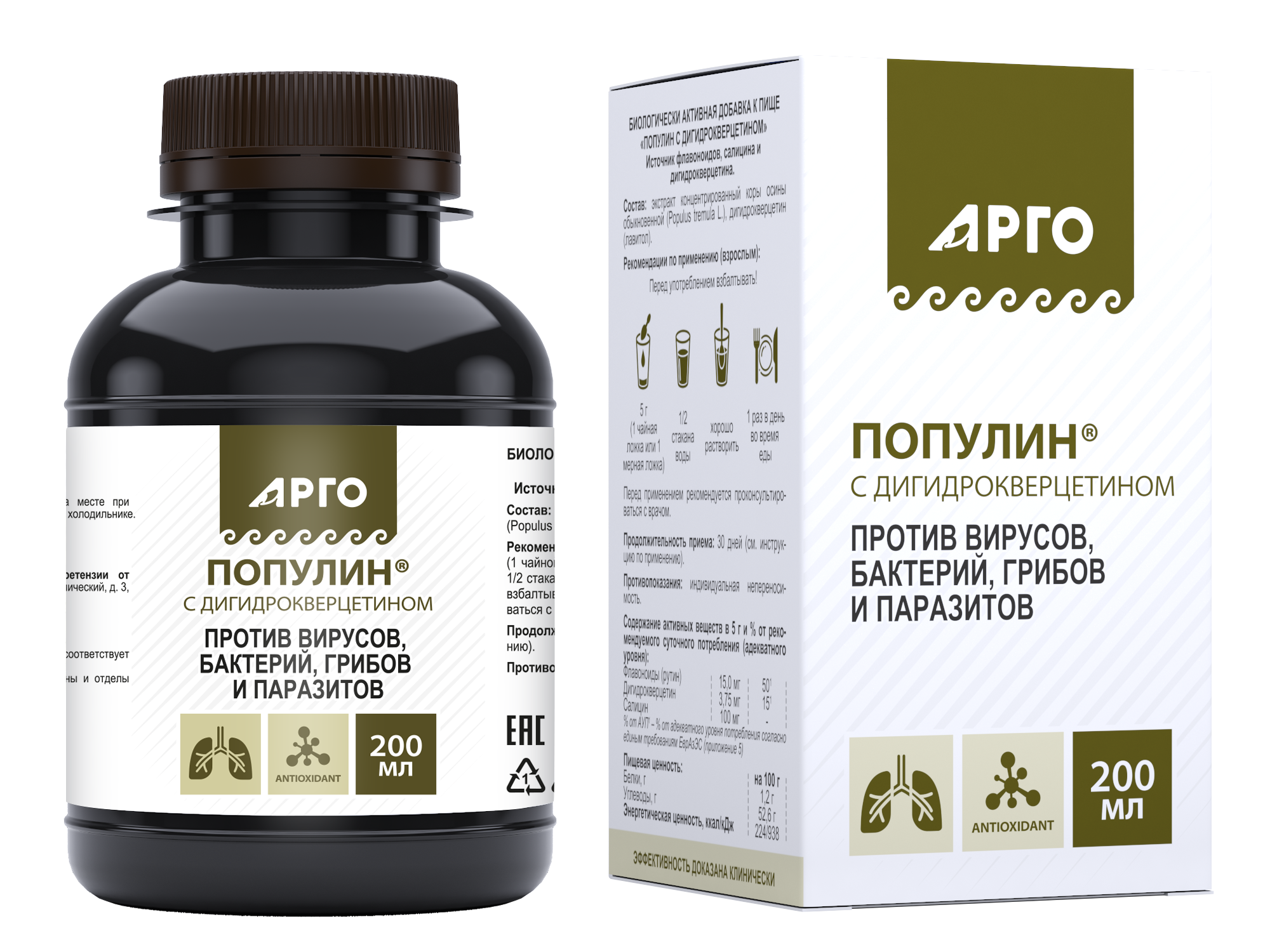 Aspen bark extract is a natural antibiotic that cleanses the body of parasites, pathogenic bacteria, viruses, and fungi. As a natural antiseptic, it has choleretic and anti-inflammatory effects, and has a beneficial effect on the liver. It restrains the activity of pathogenic microflora in chronic infection foci. Its effective against herpes viruses, papillomavirus, cytomegalovirus, COVID-19. Also it is used in the treatment of tuberculosis.