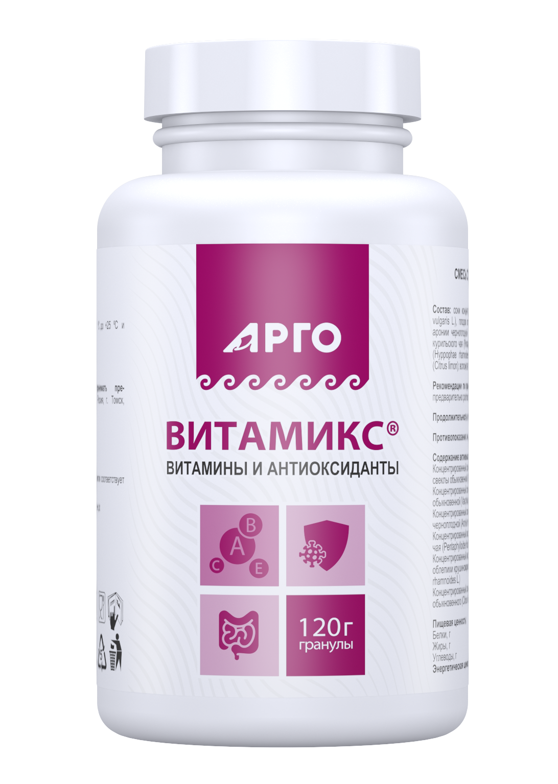 Flavonoids from berry and vegetable juices, ascorbic acid, tocopherol and carotenoids have anti-oxidant effect and activate redox processes. The vitamin complex increases body resistance against harmful external pressure and infections, lowers blood cholesterol level, improves tissue trophism.