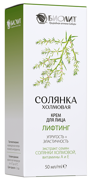 The oily extract of the hill-growing saltwort seeds supports preservation of elastin and collagen in the skin, has a pronounced rejuvenating effect, creates a natural lifting effect, regenerates damaged skin, eliminates irritation and fights against rosacea (couperosis), strengthens the blood vessels walls, has antimicrobial and disinfecting effects.