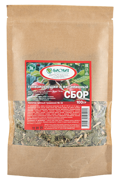 Eleuterococcus root (eleuteroside, essential oil, flafonoids, aramin alcaloid) show adaptogenic and immunomodulating activity, improve mood, physical and mental capacity, reduce cholesterol and sugar level in blood, delay vitamin C removal from the body.