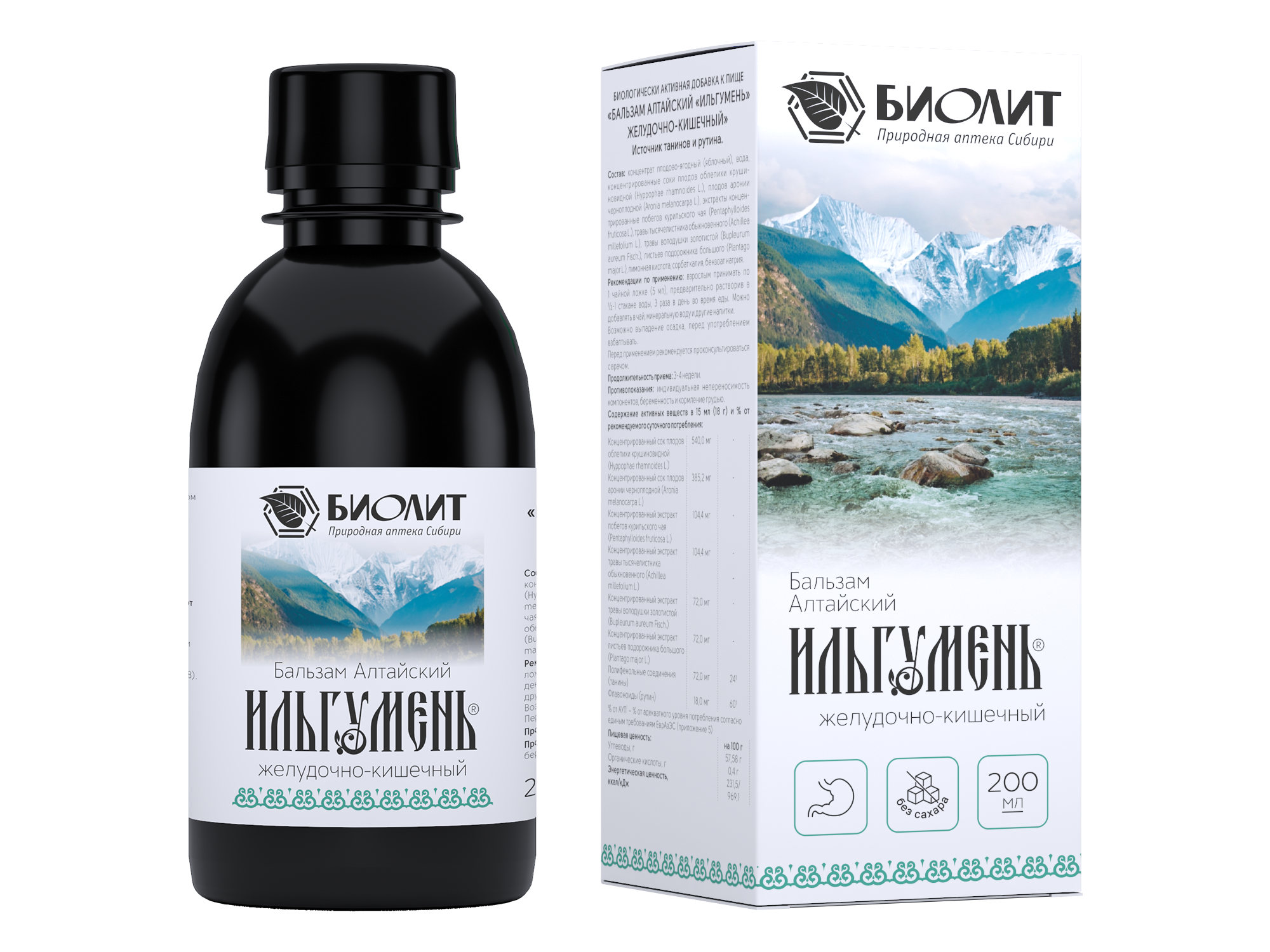 Natural composition: concentrated aqueous extracts of medicinal plants of Altai and Siberia based on fruit and berry concentrates.