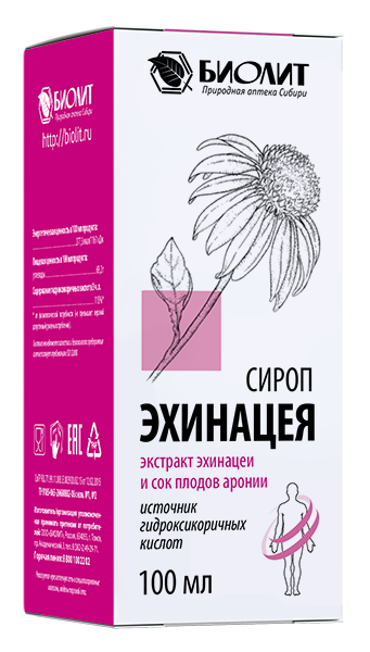 Echinacea has a stimulating effect on the immune system, increases the activity of non-specific body protection factors and cellular immunity. It also has antibacterial, antifungal, antirheumatic, detoxifying and antiviral effects. It is recommended for the prevention of colds, the prevention and treatment of immunodeficiency, asthenic conditions. Increases blood clotting. Echinacea is necessary when exposed to ionizing radiation, ultraviolet rays, various chemical compounds of a toxic nature, chemotherapeutic drugs, and prolonged use of antibiotics. The fruits of aronia have antispasmodic, hypotensive, capillary-strengthening, diuretic, choleretic, anti-sclerotic effects.