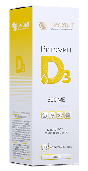 Vitamin D3 ensures the strength of teeth and bones, maintaining calcium-phosphorus balance in the physiological range. Vitamin D deficiency can lead to bone malformation (rickets in children, osteomalacia in adults) and manifestations of secondary hyperparathyroidism; increases both innate and acquired immunity by participating in the activation of immune cells; regulates gene activity, 3% of the genome is influenced by vitamin D; participates in the synthesis of biologically active substances of the brain, providing such processes such as attention, efficiency, sleep, memory, mood; has a beneficial effect on blood clotting processes, on the condition of vascular walls; promotes the synthesis of sex hormones; supports normal lung activity, improves the condition of smooth muscles of the respiratory tract.